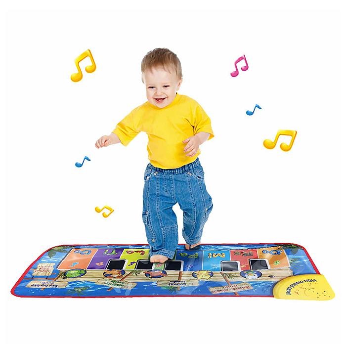 На музыкальном коврике-пианино 8 белых и 5 черных клавиш. Каждая из них прописана в соответствии с нотой, которую она проигрывает при нажатии. Пробуйте сочинять простые мелодии и развивайте музыкальный вкус с детства.